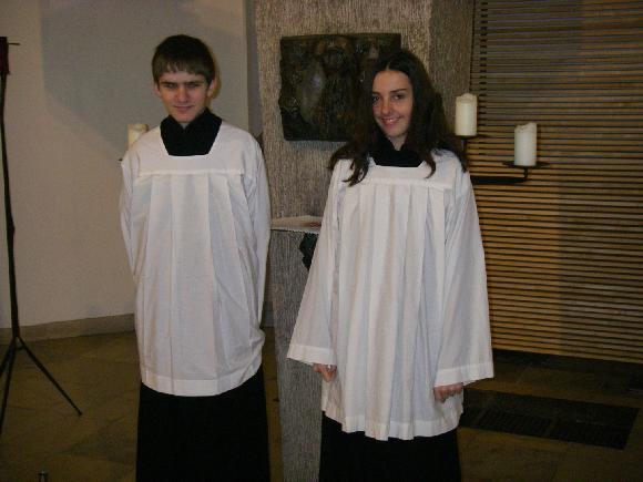 | weiß | Weiß steht für Freude und Festlichkeit, deshalb wird es zu Weihnachten und zu Ostern sowie an allen Jesus-, Marien- und Heiligenfesten (außer bei Märtyrern) getragen. Wenn der Pfarrer weiß trägt, verwenden die Minis dennoch rot. | |